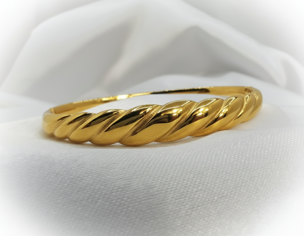 Inspired by the beautiful, spiraling forms of treasures washed ashore, The Shell Bangle captures the timeless rhythm of the tide. Its bold, sculptural twist mimics the elegant ridges of a seashell, creating a statement of effortless, coastal-inspired style.