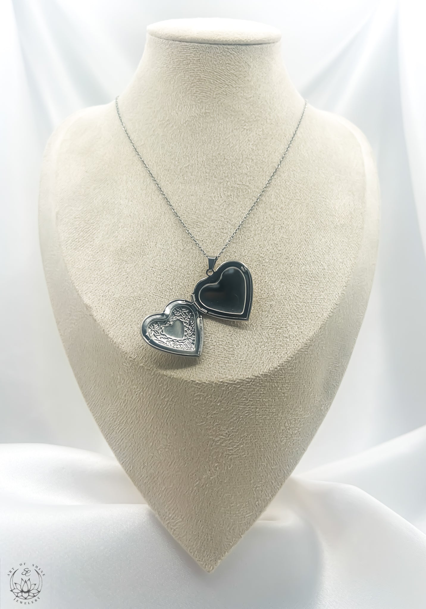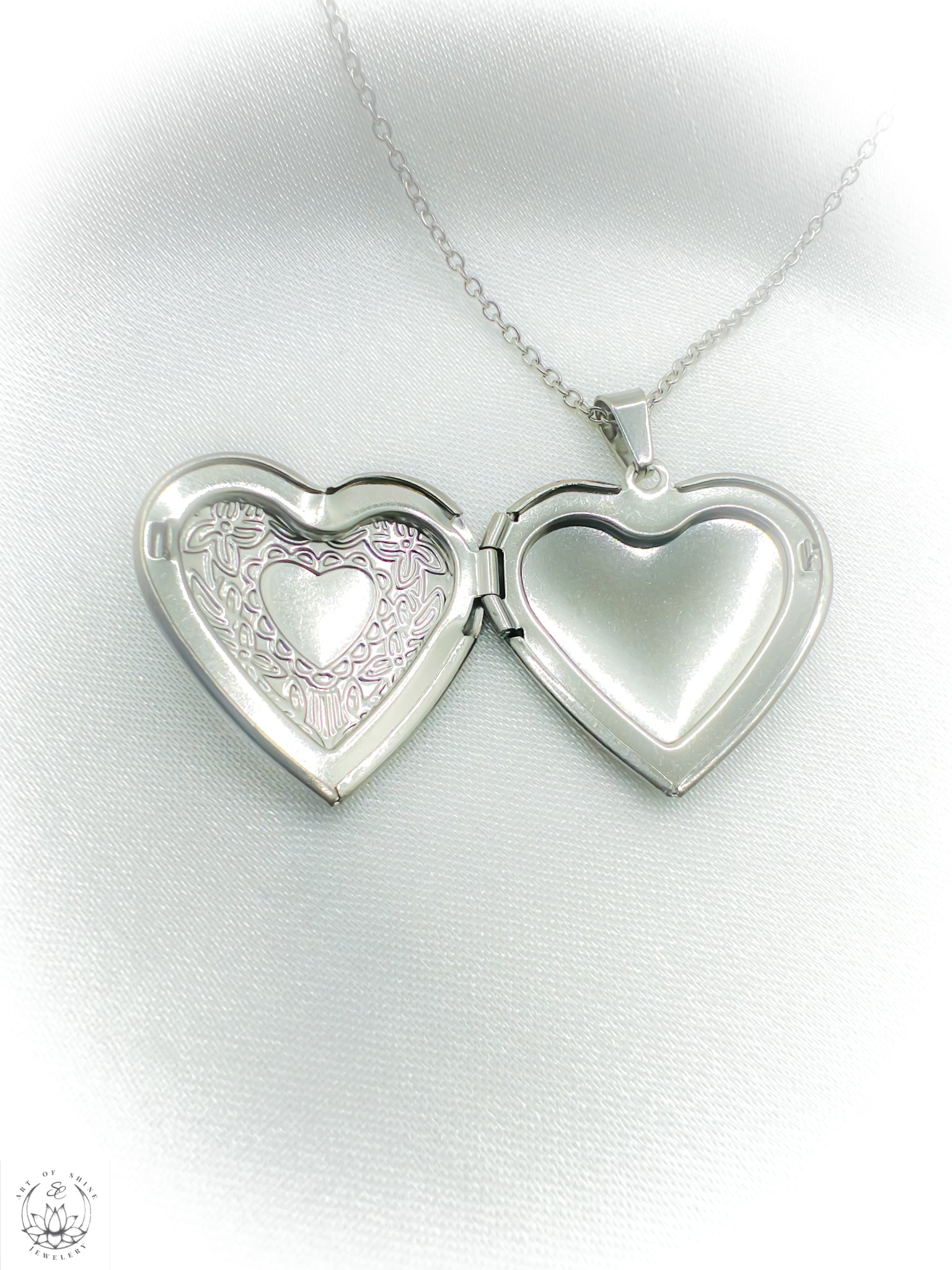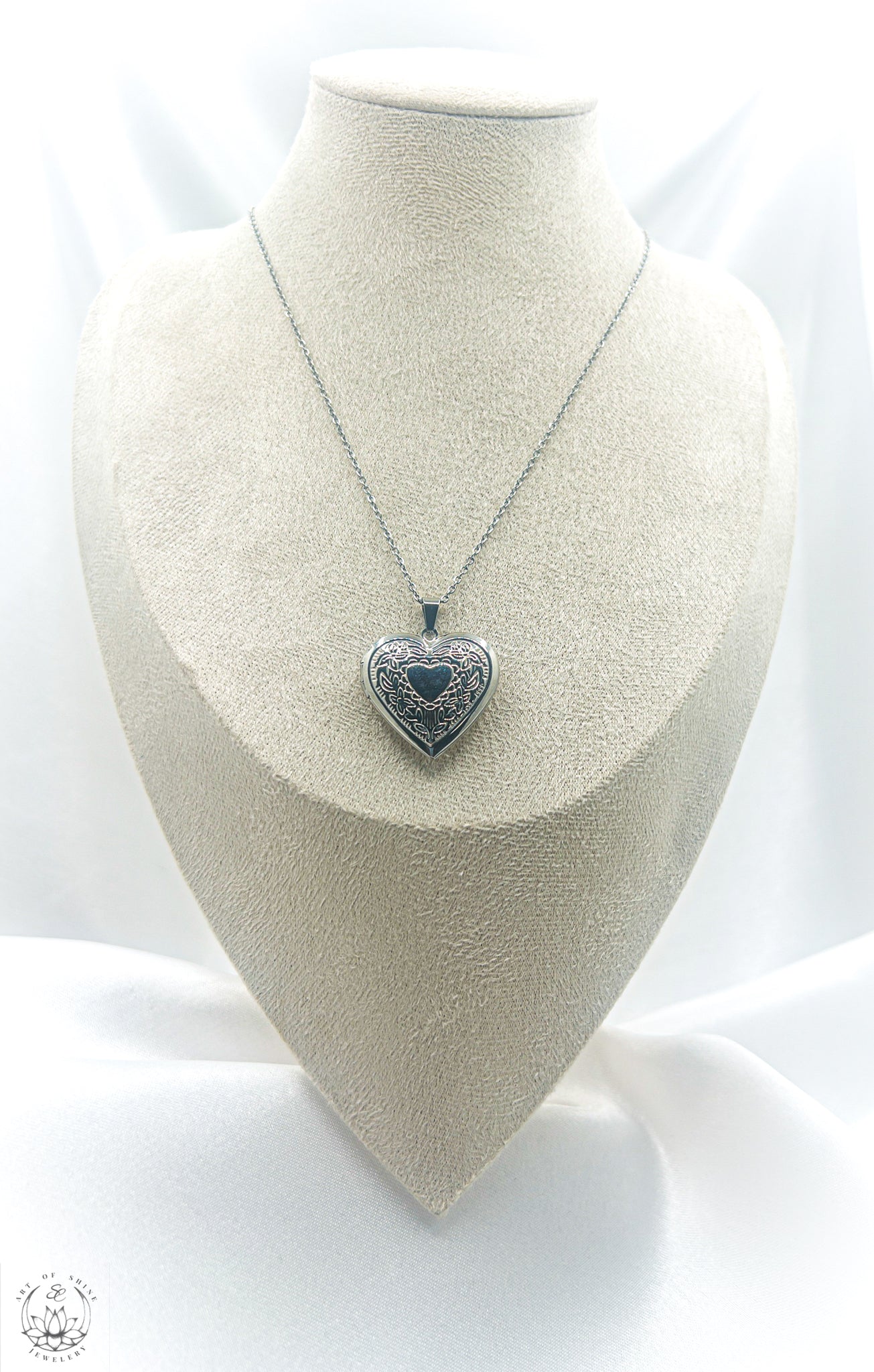 A timeless keepsake designed to hold your most cherished memories close. Our Vintage Heart Locket features a beautiful, intricate floral engraving that frames a polished central heart. This classic piece is a treasure chest in miniature, opening to reveal a secret place to keep a beloved photograph or tiny memento.